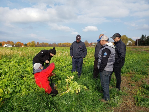 Légende : Des agriculteurs participants observent les résultats de leur essai en champ.