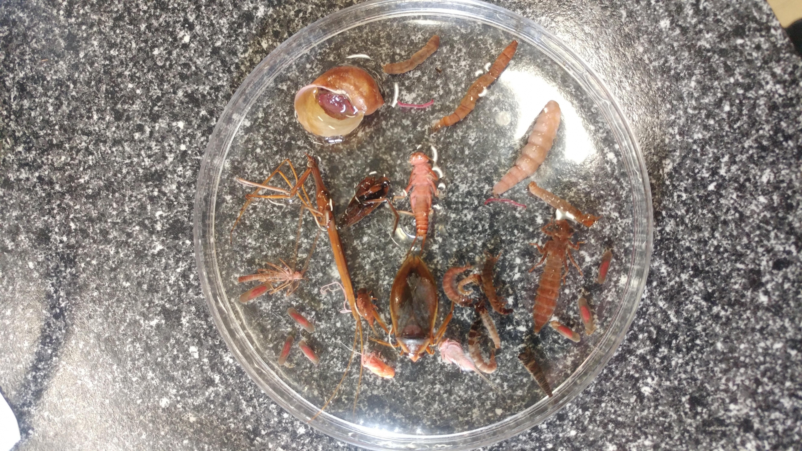 « Un macroinvertébré benthique est un animal dépourvu de colonne vertébrale ou sans squelette interne. Le mot « macro » signifie qu’il est visible à l’œil nu et « benthique » indique qu’il se retrouve au fond des cours d’eau et des lacs. Ces animaux forment un important maillon de la chaîne alimentaire et plusieurs d’entre eux participent également à la décomposition de la matière organique. »(G3E, 2020)