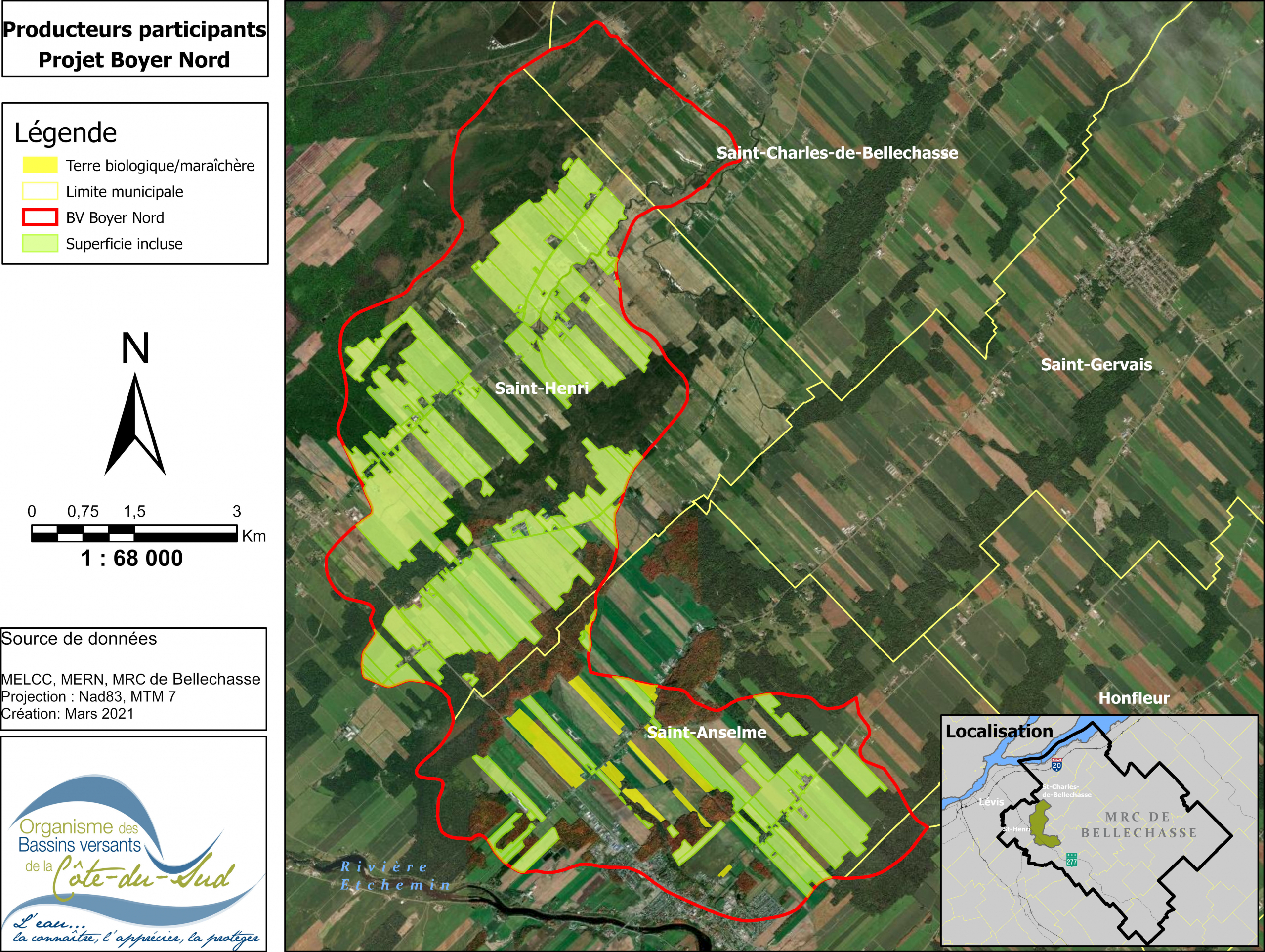 Le projet se déroule dans le sous bassin versant de la rivière Boyer Nord qui occupe une superficie totale de 5 295 ha.